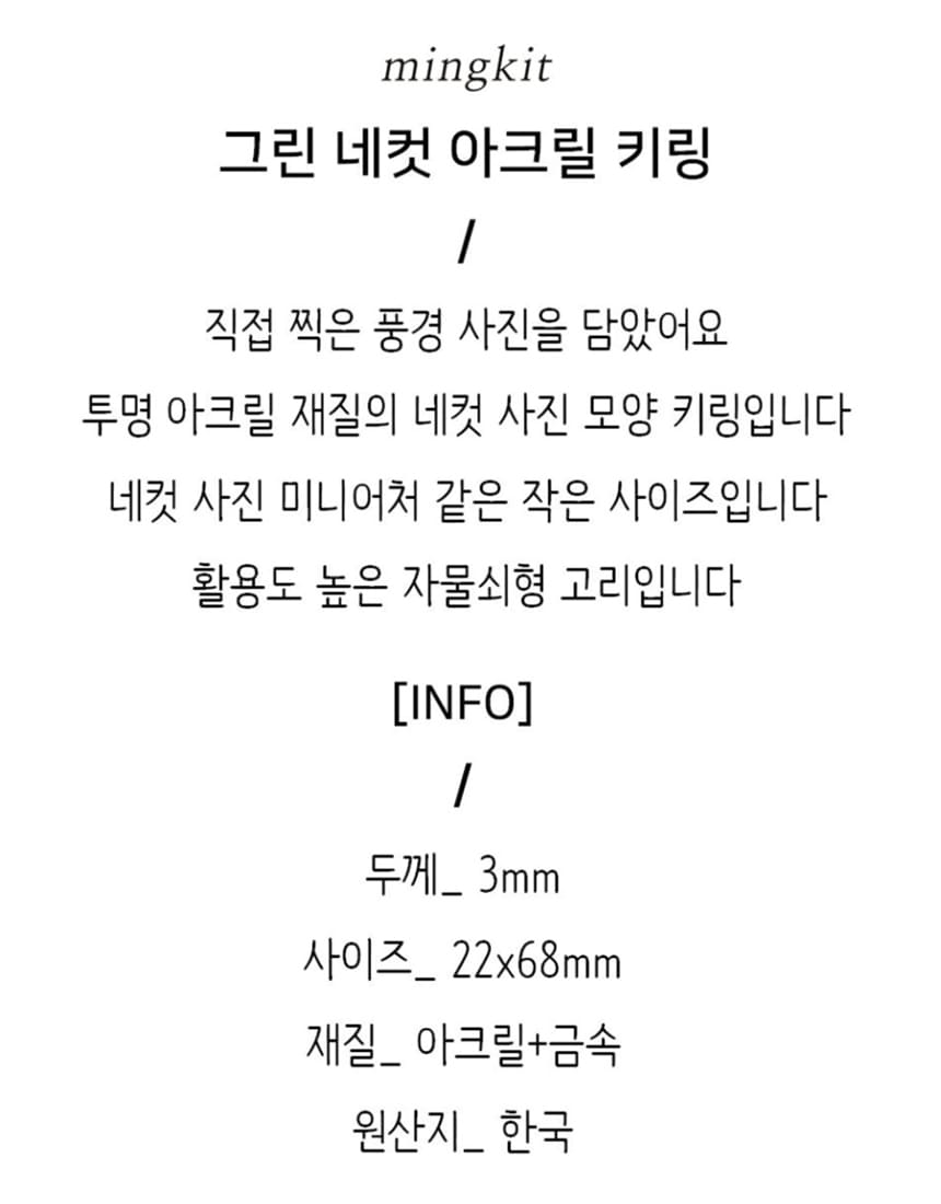 “그린 네컷 아크릴 키링”의 첫 상품평을 남겨 주세요 응답 취소